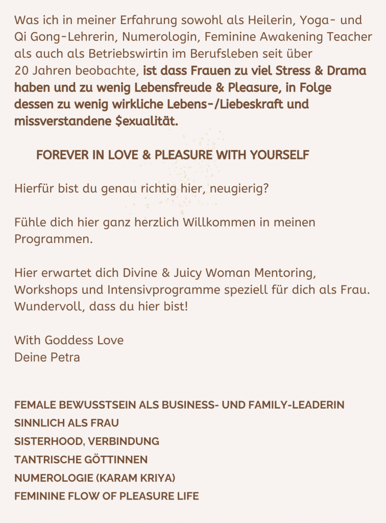 Liebe Petra, ich bin so froh über die facettenreichen Botschaften der Göttinnen und war berührt und ermutigt ob Deinem mit uns Teilen Deiner Erfahrung Deines Zugangs zu ihnen 🧡